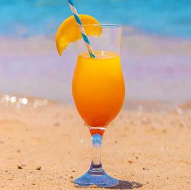 - Frapper vigoureusement au blender les jus de citron, d’orange et d’ananas avec de la glace pilée.