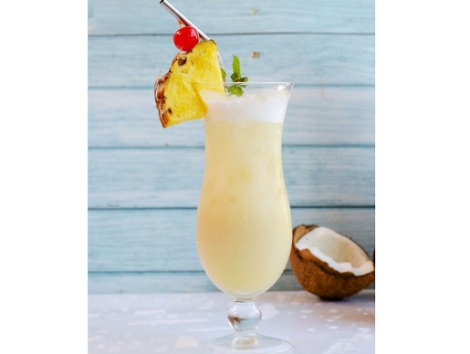 La piña colada est une boisson alcoolisée composée de jus d’ananas, lait de coco, jus d’orange, ananas, vanille ou cerises, feuilles de menthe et glaçons.